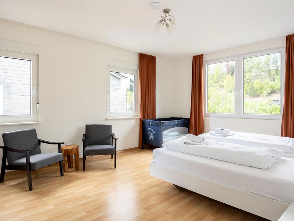 Haus am Sorpe is located in the heart of the pleasant and friendly village that is surrounded by wooded hills and direct access to the beautiful Negertal you endless hiking and mountain bike trails encounters. For active holidaymakers are the public swimming pool and tennis court just a stone's throw away, but you can also just lounge on the spacious balcony or in the 90 meter long garden of the sun. The quiet location is combined with good accessibility to the famous ski areas around Winterberg.